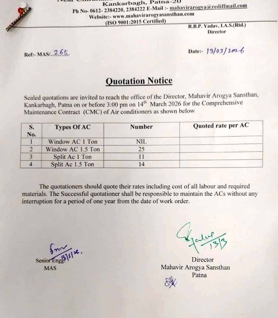 Quotation Notice for Window and Split AC